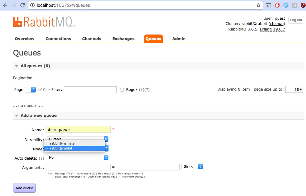 RabbitMQ: add queue